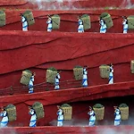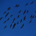 한 무리의 재두루미가 민간인 출입통제선 이북에 있는 강원 철원군 철원평야에서 날고 있다. 천연기념물 제203호인 재두루미는 10월 말쯤 한반도로 날아와 겨울을 보낸 뒤 이듬해 봄에 시베리아, 몽골 등 북쪽 지방으로 돌아간다. 고개를 치켜 들면 사람만큼 큰 새라지만, 사람들의 인기척에 호들갑스럽게 도망친다. 더 좋은 장면을 찍고 싶었지만, 날아오르는 모습이 힘겨워보여 욕심을 채우지 못한 채 카메라를 내려 놓았다. 2012.11. 15. 철원평야