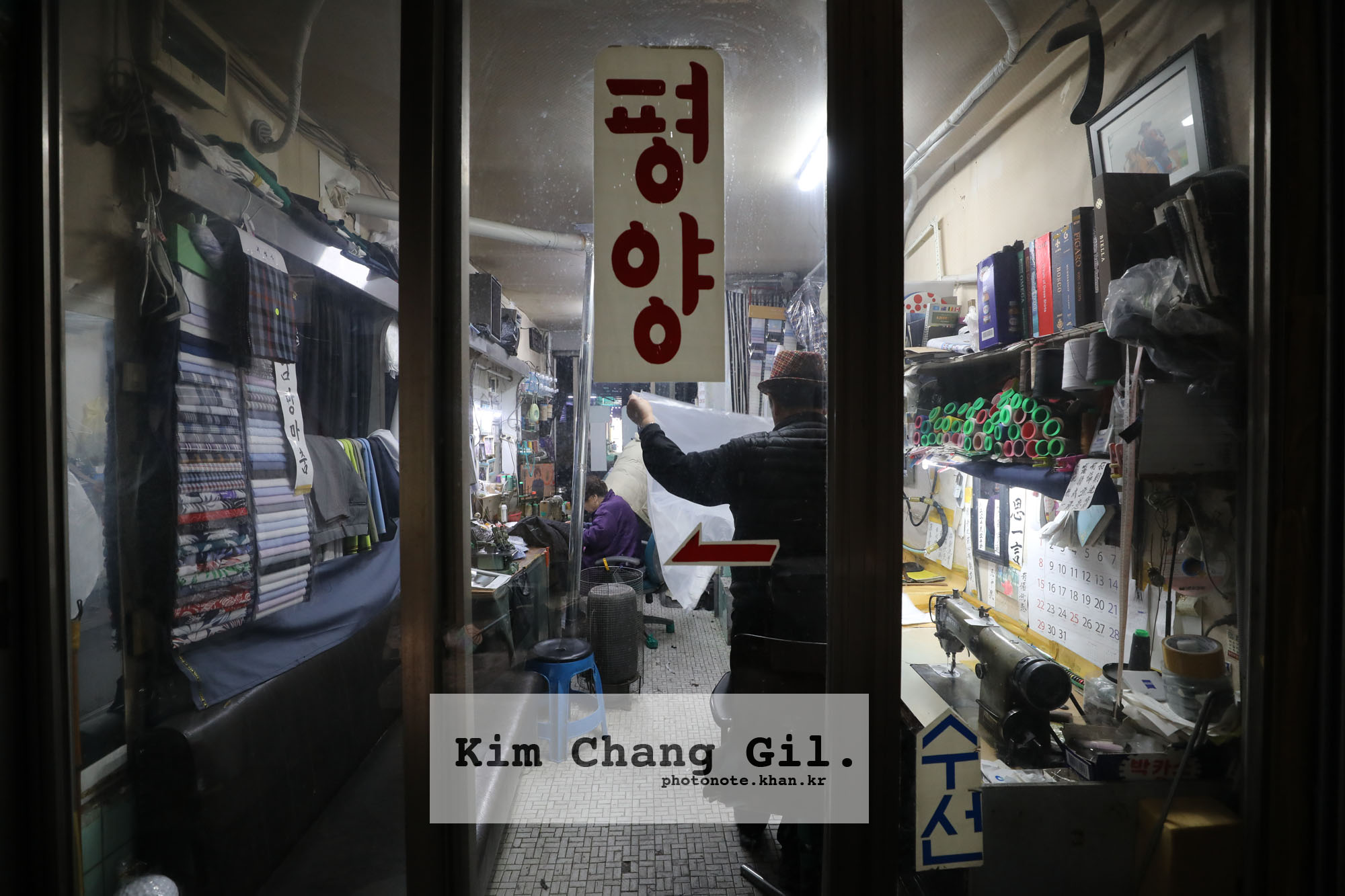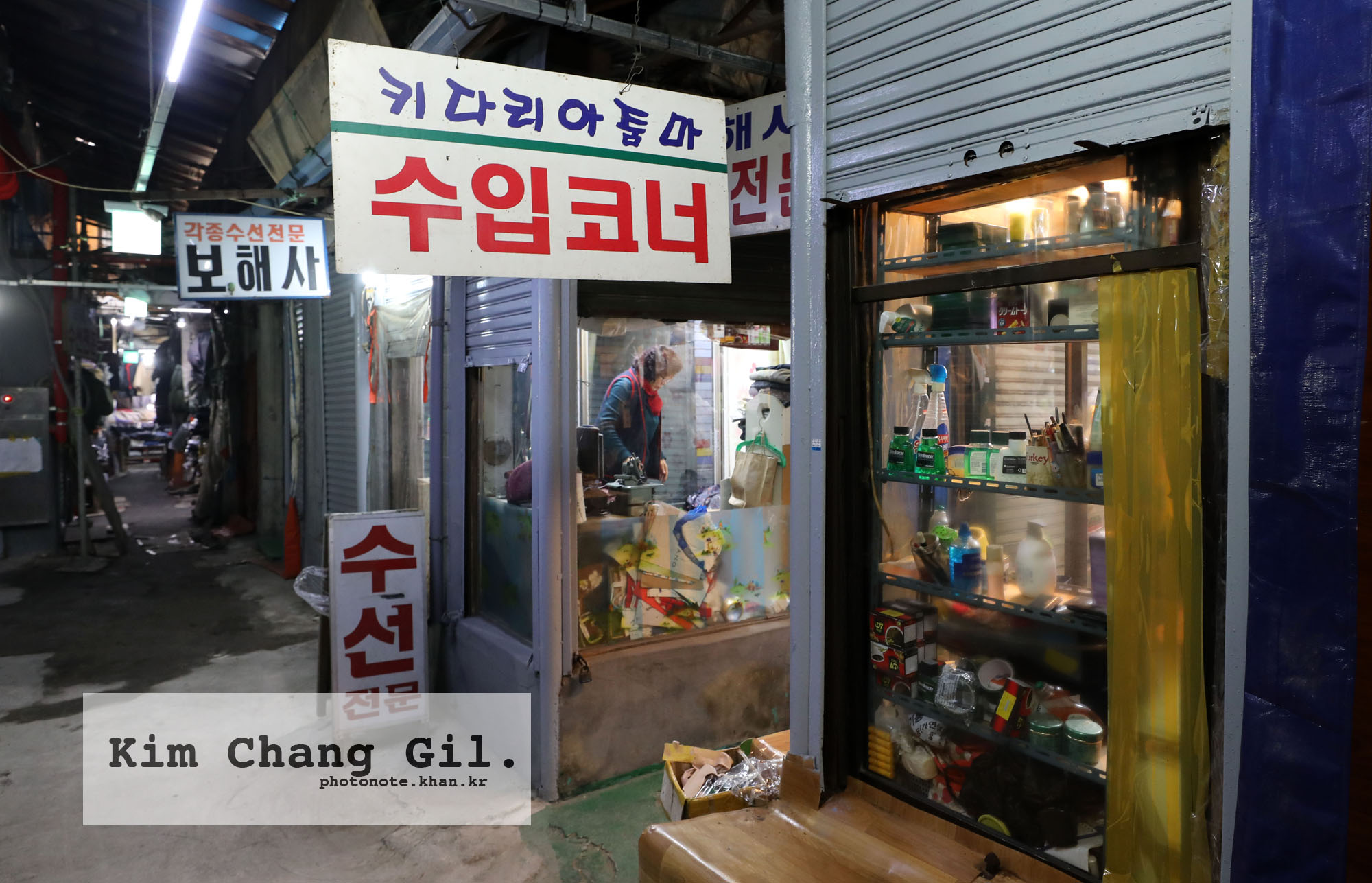 이곳이 서울의 명동처럼 휘황했다는 것을 말해주는 간판도 있다. 양복점 백만불라사는 통금시간 직전까지 셔터를 내리지 않고 돈을 끌어 모았던 시절도 있었다는 것일 게다. 간판들은 또 다른 이야기들도 전해준다. 황해사, 평양 수선집 주인들은 피란민이었다고. 영례네, 경자네, 석이네, 은정이네, 재규네…. 좁은 골목 낮은 하늘 아래 팻말처럼 걸린 작은 간판들의 이름은 이모네, 형제사, 자매집처럼 시장 상인 모두가 가족같이 지냈다는 뜻일 게다.