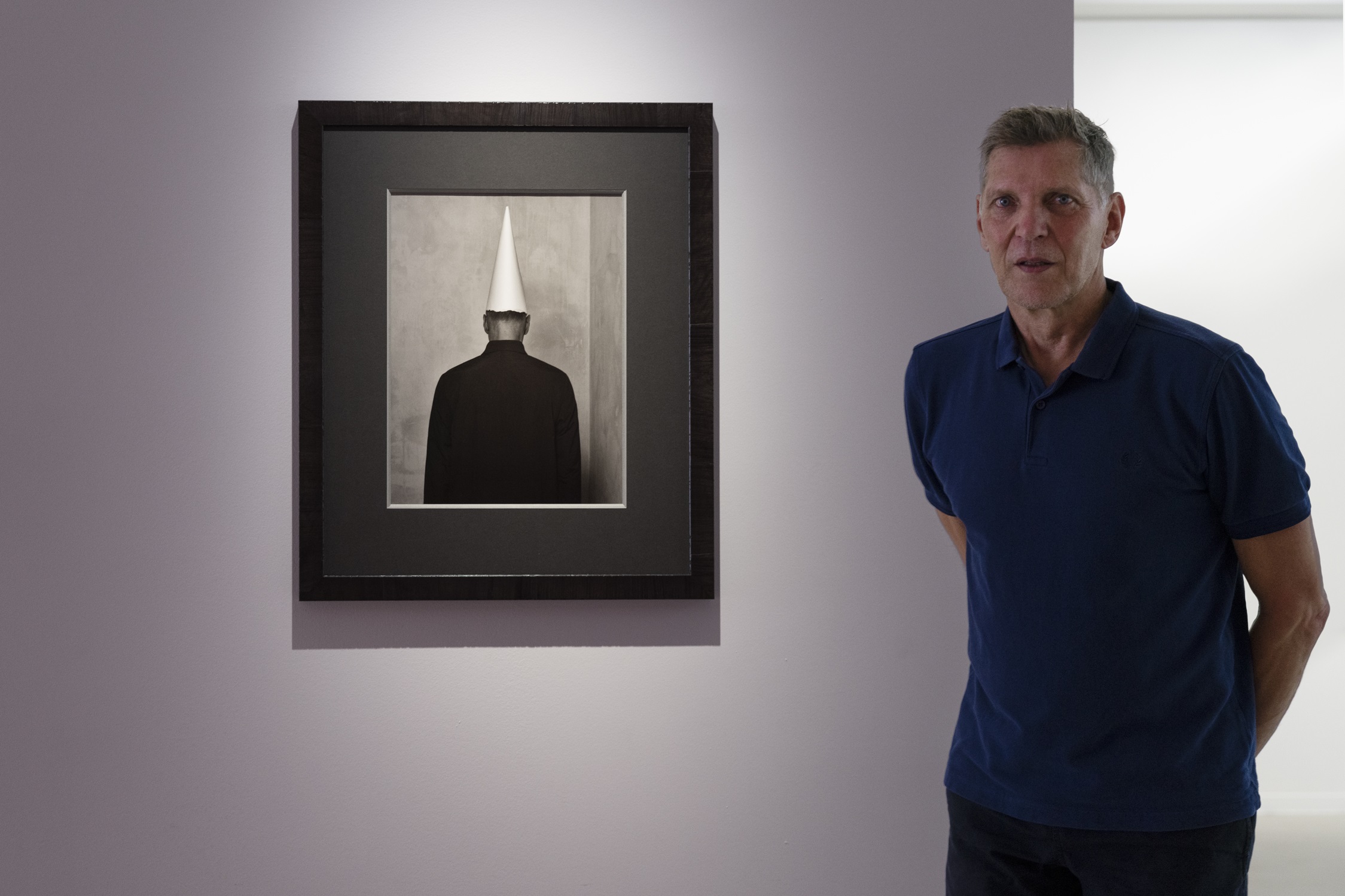 어윈 올라프가 떠올린 것은 하얀 고깔모자와 광대 마스크였다. 밀랍처럼 굳어진 마스크의 광대 노인은 무표정한 표정을 짓고 있다. 중세 시대에 죄수나 사형수가 썼다는 '카피로테(capirote)'를 떠올리게 하는 하얀 고깔모자는 우스꽝스럽다가 결국에는 섬뜩한 느낌을 불러일으킨다. (백인우월주의 KKK단은 이 섬뜩함을 알아차렸고, 그들의 복장으로 택했다.) 하지만 두려움과 섬뜩함, 공포를 느낀 것은 광대를 연기했던 어윈 올라프 그 자신이었을 것이다. 그는 그것을 그대로 드러내기보다는 두 번 감추는 방법을 선택했다. 하얀 밀랍을 얼굴에 바르고, 무표정을 연기하는 것. 감출 수 없는 것을 두 번 감추려 했기 때문에 광대의 절망감과 두려움은 배가 된다.