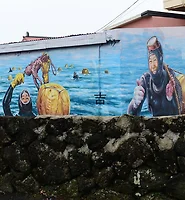 돌고래 찾기는 오후에도 계속됐다. 애월읍의 한 불턱에 들어서자 해녀가 날카로운 눈빛으로 쏘아본다. 불턱은 해녀 탈의장이다.
