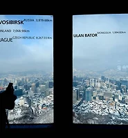 서울 남산에서 바라본 서쪽 하늘에 먹구름이 몰려오고 있다. 2008년.