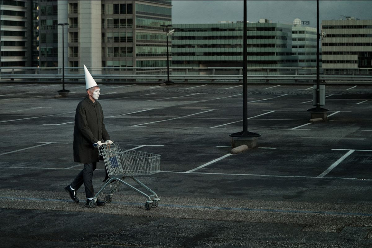 하얀 고깔모자를 쓴 광대 노인이 카트를 밀며 걷고 있다. 네덜란드의 한 마트 옥상 주차장이다. 모든 광대가 그렇듯이 노인의 표정도 슬프다. 웃기 싫은데 웃을 수밖에 없는 광대 조커의 슬픈 표정과는 다르다. 그의 슬픔도 이유가 있다. 노인네답게 한 발 늦었다. 사재기로 마트는 이미 텅 비어 있던 것이다.
